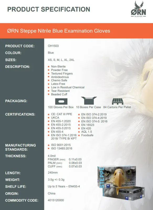 ORN Steppe Classic Blue Powder Free Nitrile Gloves - SOLD IN CASES OF 1000 (10 boxes of 100) just £2.79 per box of 100!