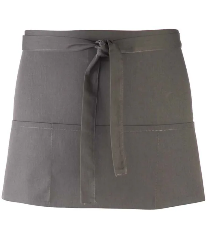A popular style of Apron seen in many bars and restaurants, this short waist apron has three open pockets and comes in 28 colours from the Premier 'Colours Collection’. The pockets are ideal for carrying payment terminals and tablet devices.